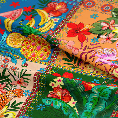 Schwerpunkt unserer Arbeit ist die Entwicklung kreativer Designs für den Digital- und Rotationsdruck und den dazugehörigen Basics. Neben der Umsetzung von speziellen Kundenwünschen werden so jährlich ca. 400 neue Dessins in die eigenen Kollektionen aufgenommen. In unserer modernen Digitaldruckerei werden eine Vielzahl von Maschen- und Webwaren bis hin zu hochelastischen Jerseys oder Kettengewirken bedruckt. Speziell im Bademoden- und Tagwäschebereich sind wir der einzige Kollektionsanbieter mit eigener Druckerei auf dem deutschen Markt.